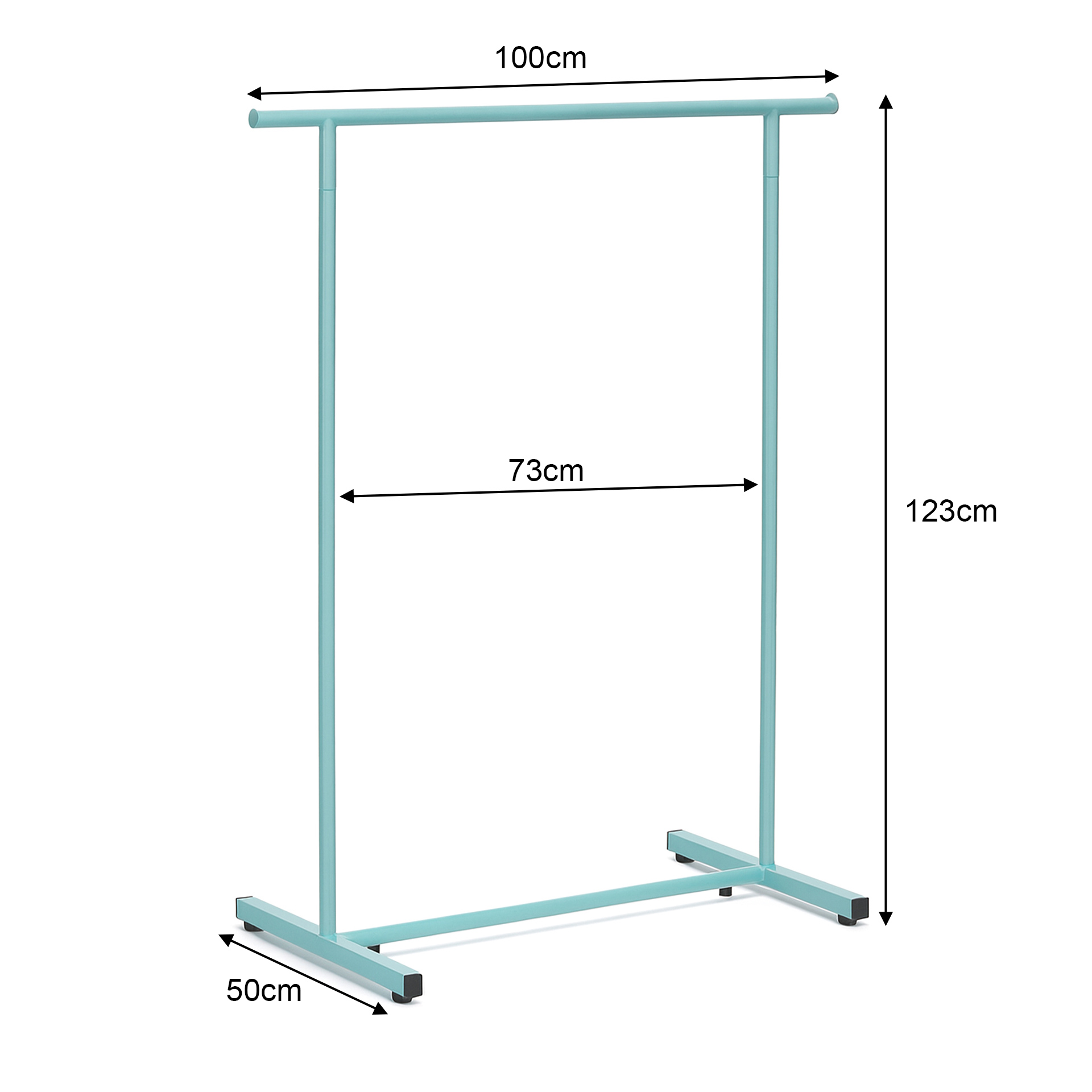 Stojak ubraniowy LOFT w kolorze niebieskim to funkcjonalny i stylowy element wyposażenia pokoju dziecięcego oraz sklepów z odzieżą dziecięcą. Jego wymiary wynoszą 123 cm wysokości, 100 cm szerokości oraz 50 cm głębokości, dzięki czemu idealnie dopasowuje się do potrzeb najmłodszych użytkowników, oferując wygodne miejsce do przechowywania ubrań i akcesoriów.