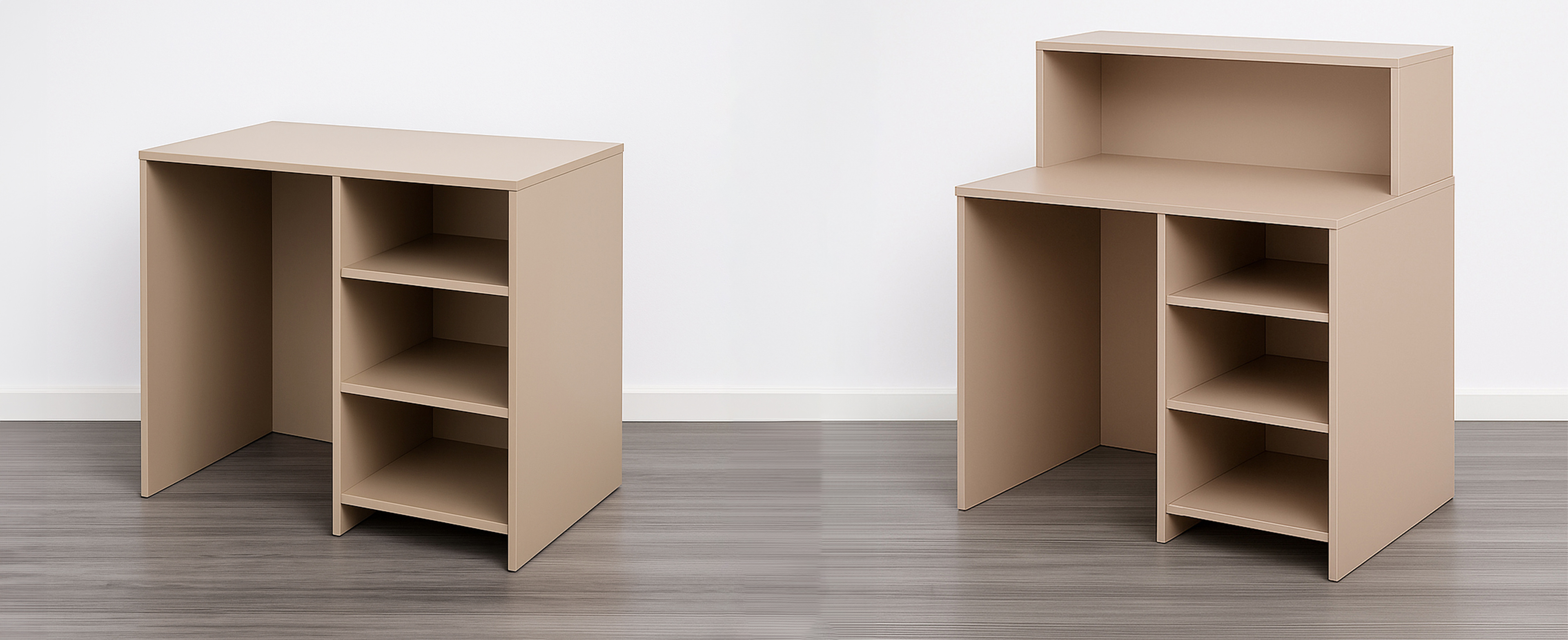 Dla zwiększenia funkcjonalności lady proponujemy opcję z nadstawką, która pomoże w utrzymaniu porządku na ladzie, możesz tam również schować akcesoria jak laptop, kasa fiskalna itp. Nadstawkę oferujemy na całą szerokość lady. Wysokość nadstawki to standardowo 30cm.
