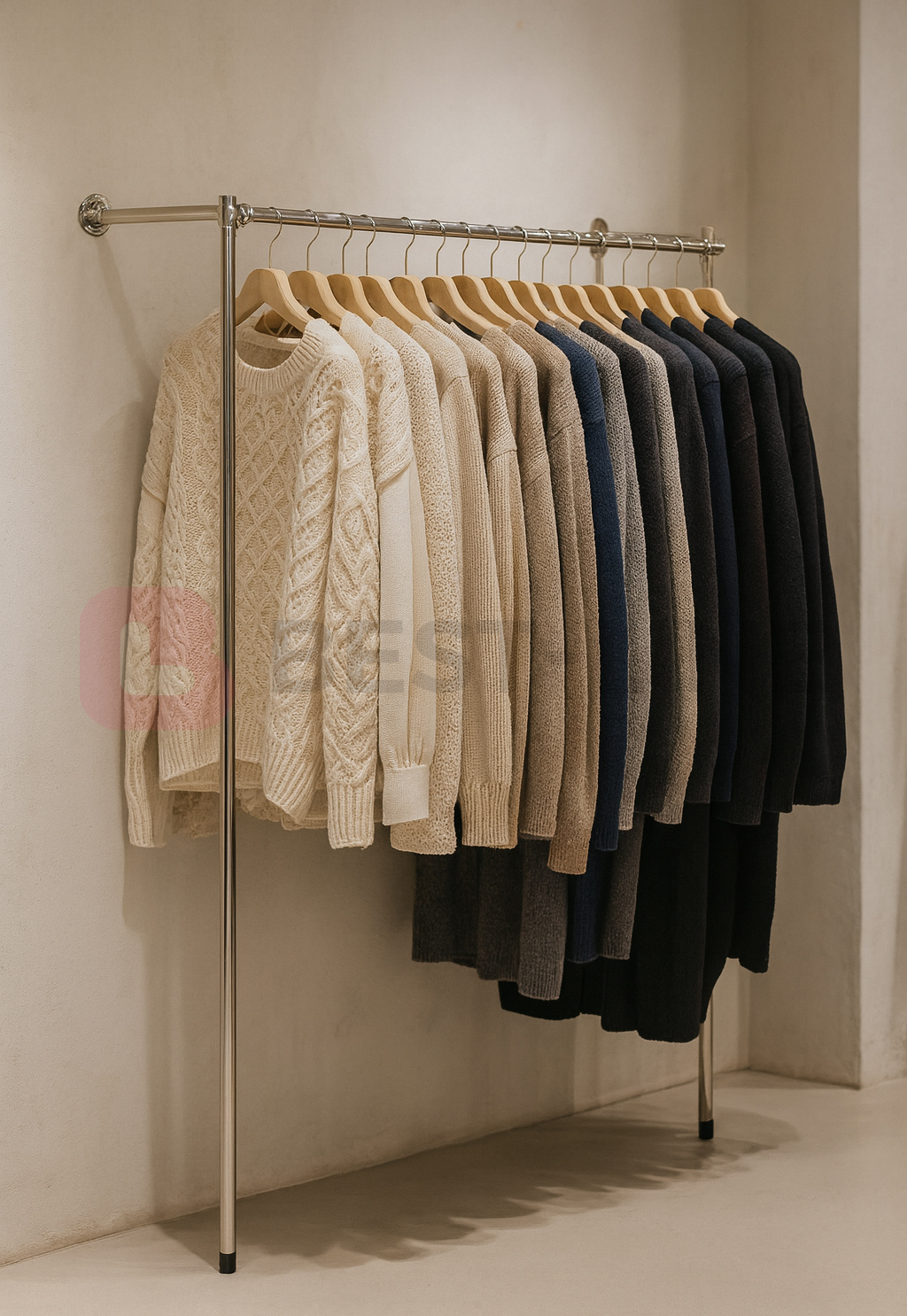 System rurowo-złączkowy jest popularnym i uniwersalnym rozwiązaniem do ekspozycji towaru w sklepach odzieżowych. W naszej ofercie znajdziesz również inne przedmioty oparte na tym systemie, takie jak gondole, stojaki na odzież czy przymierzalnie, co pozwala na stworzenie funkcjonalnego sklepu z odzieżą.