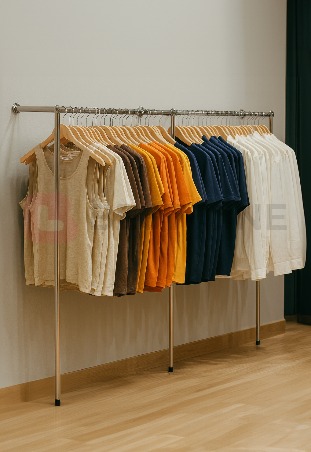System rurowo-złączkowy jest popularnym i uniwersalnym rozwiązaniem do ekspozycji towaru w sklepach odzieżowych. W naszej ofercie znajdziesz również inne przedmioty oparte na tym systemie, takie jak gondole, stojaki na odzież czy przymierzalnie, co pozwala na stworzenie funkcjonalnego sklepu z odzieżą.
