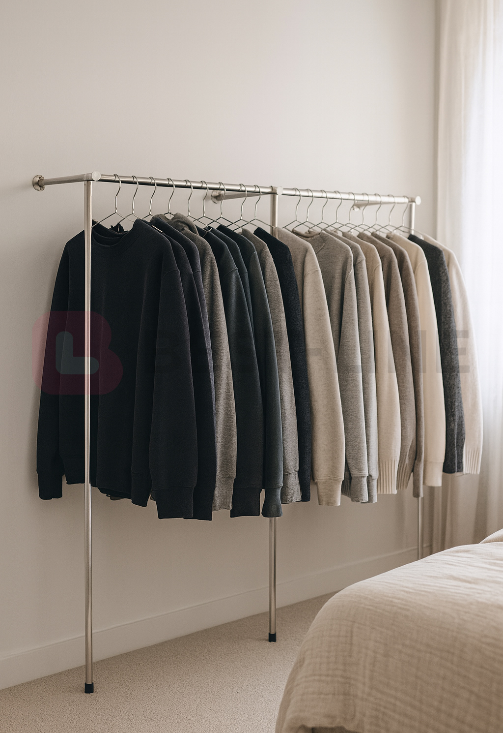 Ten regał jest idealnym rozwiązaniem do prezentacji i ekspozycji ubrań. Jego uniwersalny charakter pozwoli Ci wykorzystać go w dowolnym pomieszczeniu, dodając mu zarazem eleganckiego i industrialnego charakteru. Niech Twój regał stanie się nie tylko praktycznym elementem organizacyjnym, ale również designerskim akcentem, który podkreśli charakter Twojego wnętrza.
