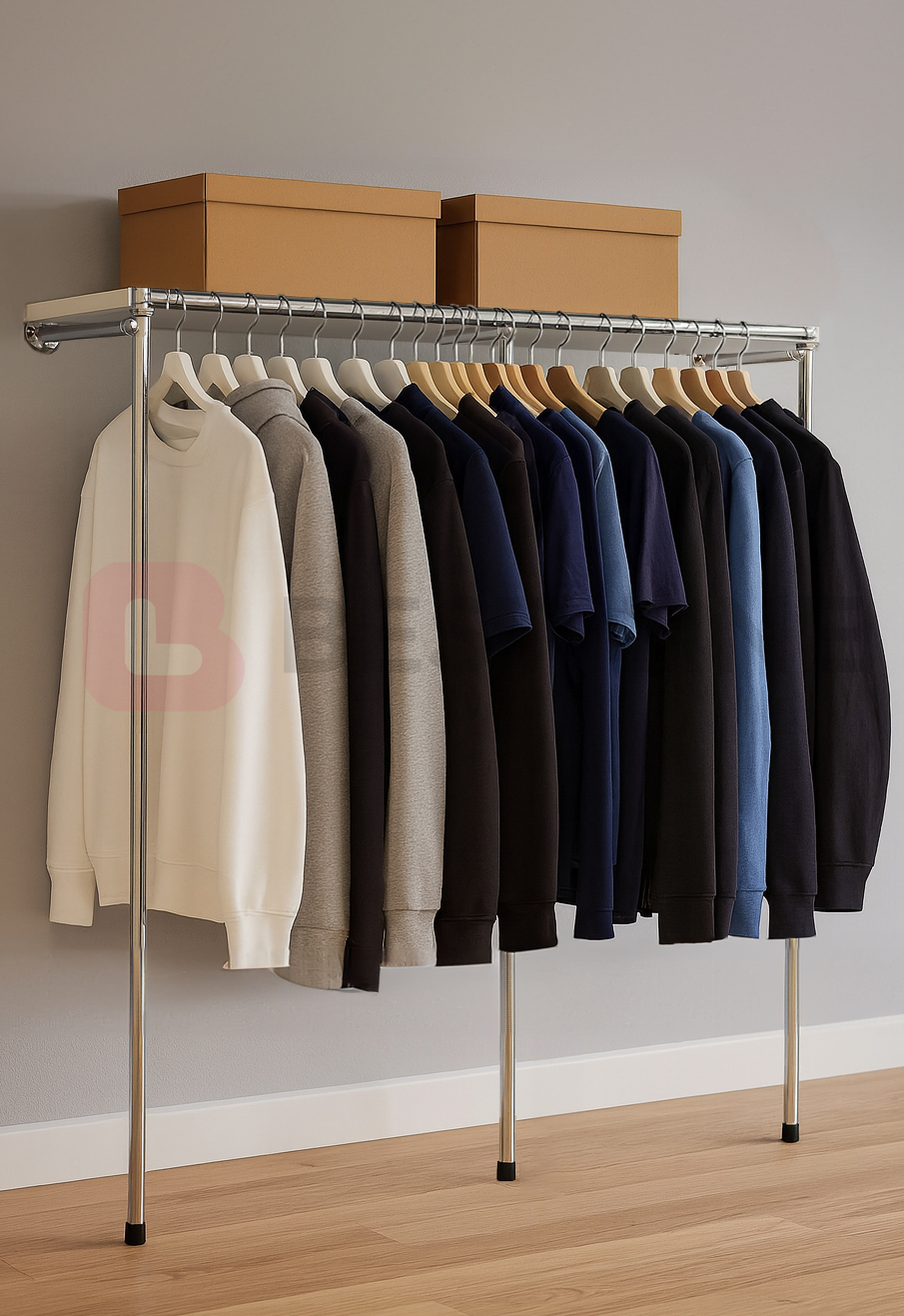 Ten regał jest idealnym rozwiązaniem do prezentacji i ekspozycji ubrań. Jego uniwersalny charakter pozwoli Ci wykorzystać go w dowolnym pomieszczeniu, dodając mu zarazem eleganckiego i industrialnego charakteru. Niech Twój regał stanie się nie tylko praktycznym elementem organizacyjnym, ale również designerskim akcentem, który podkreśli charakter Twojego wnętrza.
