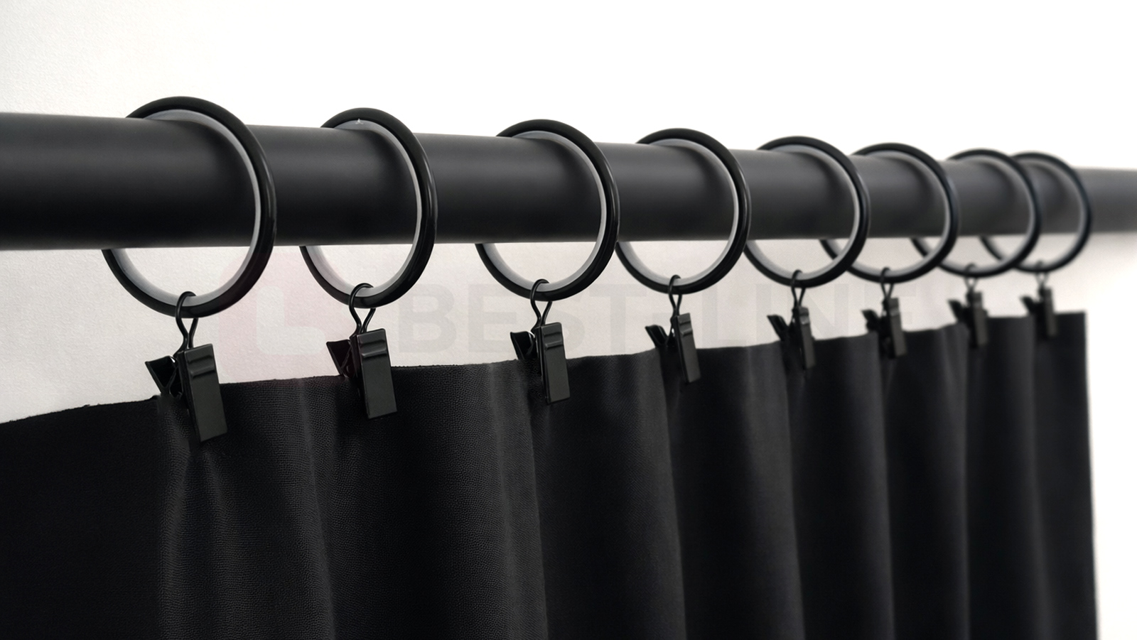 Żabki do przymierzalni w kolorze czarnym z uniwersalnymi kółkami, wykonane w całości z metalu gwarantują długą żywotność produktu. Pasują do przymierzalni z naszych ofert oraz różnego rodzaju karniszy.
